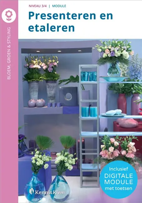 De module Presenteren en etaleren is interactief van opzet. Naast het lesboek heb je toegang tot de digitale module van deze uitgave. Hier vind je naast de interactieve extra’s zoals video’s, animaties en links nu ook toetsen*. Deze module sluit aan bij het Basisdeel Kerntaak 1 Maken en verkopen van groene arrangementen (B1-K1) van het kwalificatiedossier Bloem, Groen en Styling. De module is geschikt voor niveau 3 en 4.