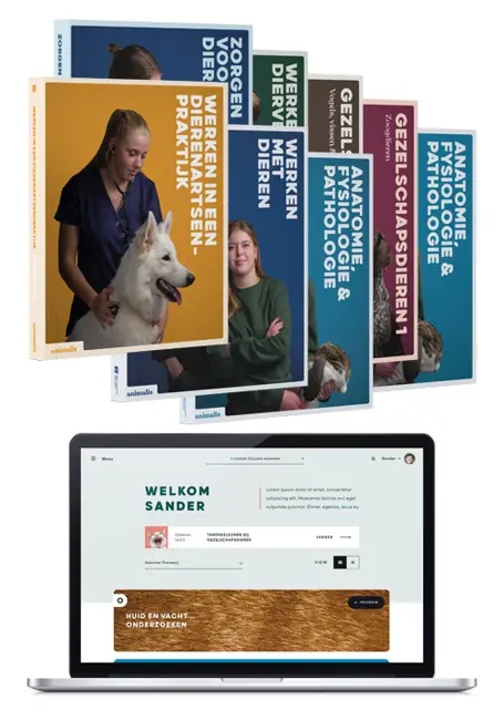 Animalis is de complete methode voor opleidingen in de sector Dierverzorging. Een grondige, praktische voorbereiding op het examen en het werken in de beroepspraktijk. De methode bestaat uit e-learning, naslagwerken én werkboeken. Animalis brengt jouw toekomstige beroep tot leven!