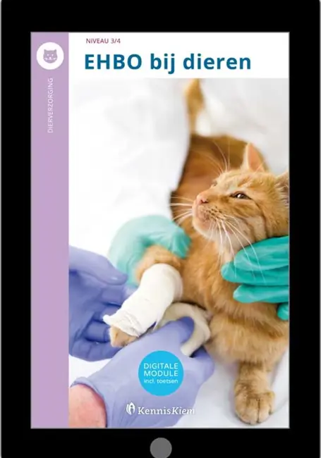 De digitale module EHBO bij dieren is onderdeel van een serie modules binnen het thema Gezondheid voor het kwalificatiedossier Dierverzorging en is bedoeld voor niveau 3 en 4. De module behandelt de EHBO van verschillende diersoorten met de nadruk op honden en katten.