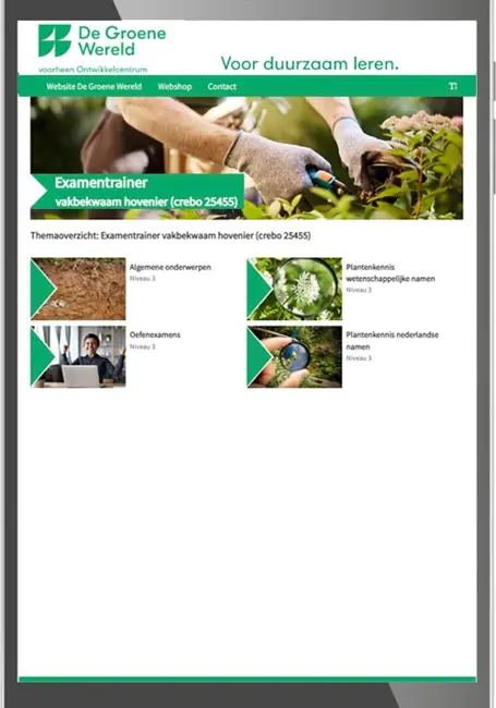 De Examentrainer Vakbekwaam hovenier is ontwikkeld voor het kennisexamen van de volgende crebo's: 25455 en 25618. Een licentie voor de Examentrainer is één jaar geldig.